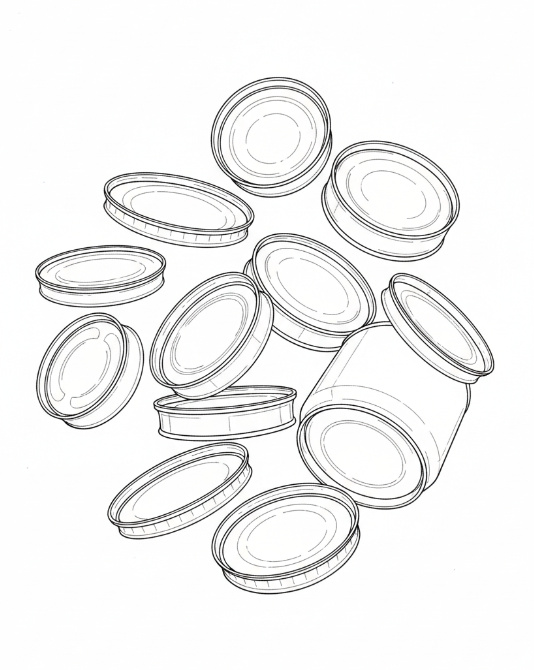 Custom lids with vibrant lithographic printing, embossed logos, and BPA-NI lacquer coatings.