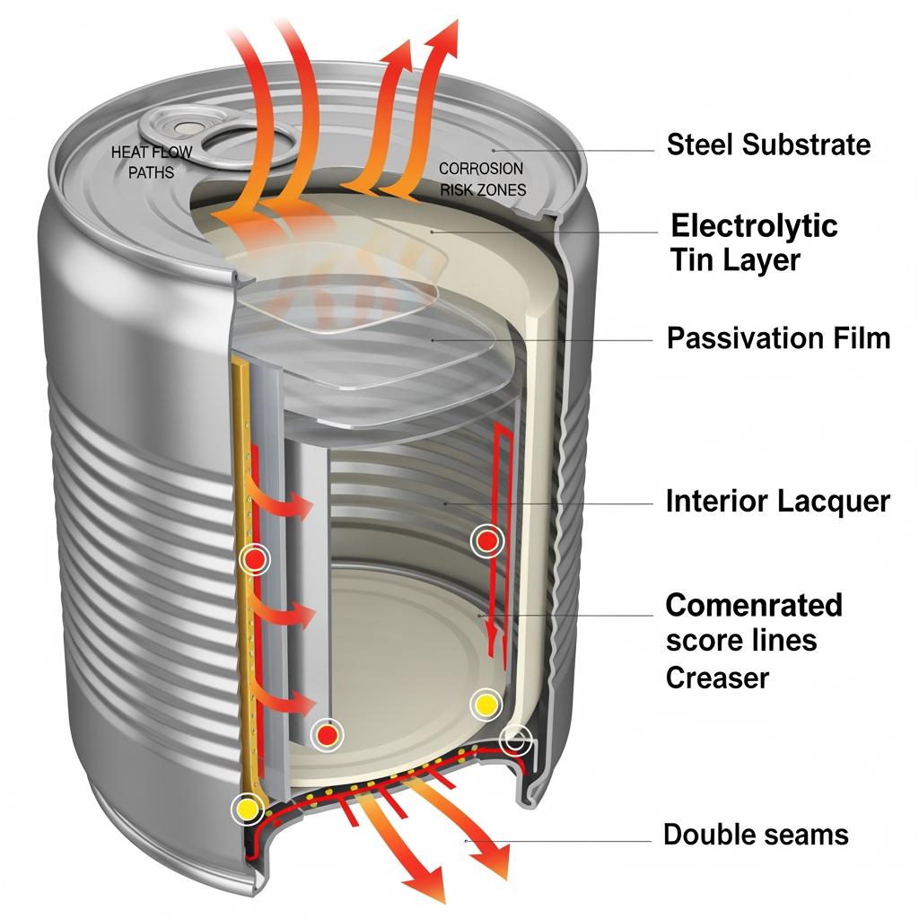 | Neutral (meat, beans) | Epoxy-phenolic | Balanced with passivation | Steam retort | Watch for sulfide staining; consider sulfur-resistant systems. |