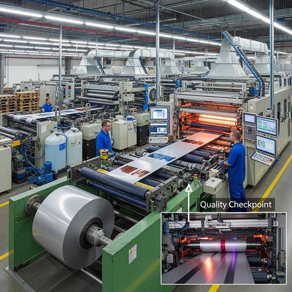 Run panels for print/lacquer, then a limited coil trial on one press, followed by a controlled ramp. Lock the master standard for finish code and bake windows before full release.