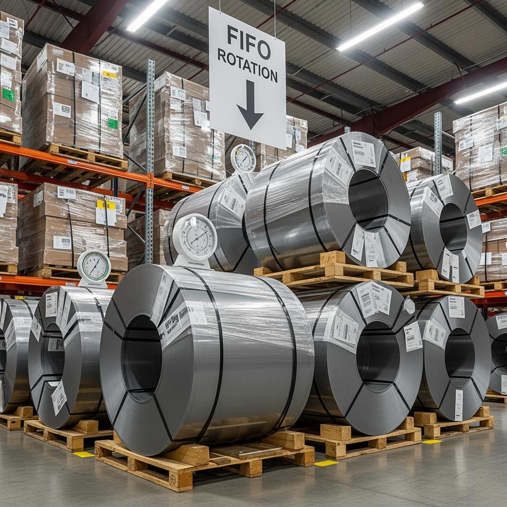 - Store coils off the floor with spacers, control dew point, and keep wrap intact until staging for slitting or printing.