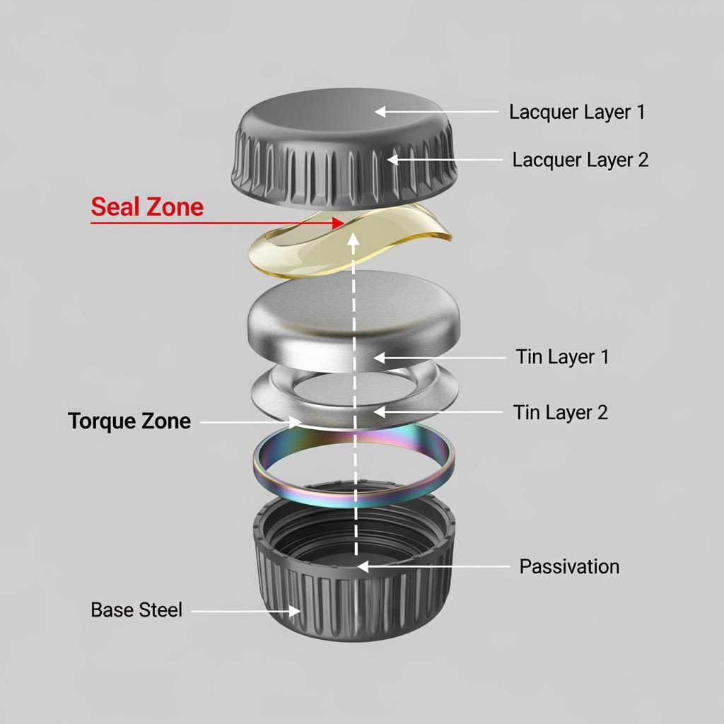 A reliable approach is to qualify on your toughest SKU: highest acidity, longest dwell at temperature, and largest vacuum swing. Run 0–6 month accelerated storage with periodic torque checks and metal exposure inspections. Stable torque trends over time are your best early warning that the coating stack is doing its job.