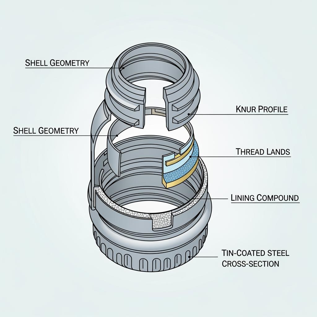 Electrolytic tin-coated steel—often called ETP or tinplate—remains the workhorse substrate for twist-off and lug closures because it couples precise formability with robust corrosion protection and clean, food-contact performance. For typical cap shells, buyers specify single-reduced tempers (T3–T5) or double-reduced grades (DR8–DR9) in thicknesses around 0.17–0.28 mm, with balanced tin coating weights (e.g., 2.8/2.8 to 5.6/5.6 g/m²). The result: crisp knurling, consistent thread definition, reliable torque retention after pasteurization, and stable lithography for brand presentation.