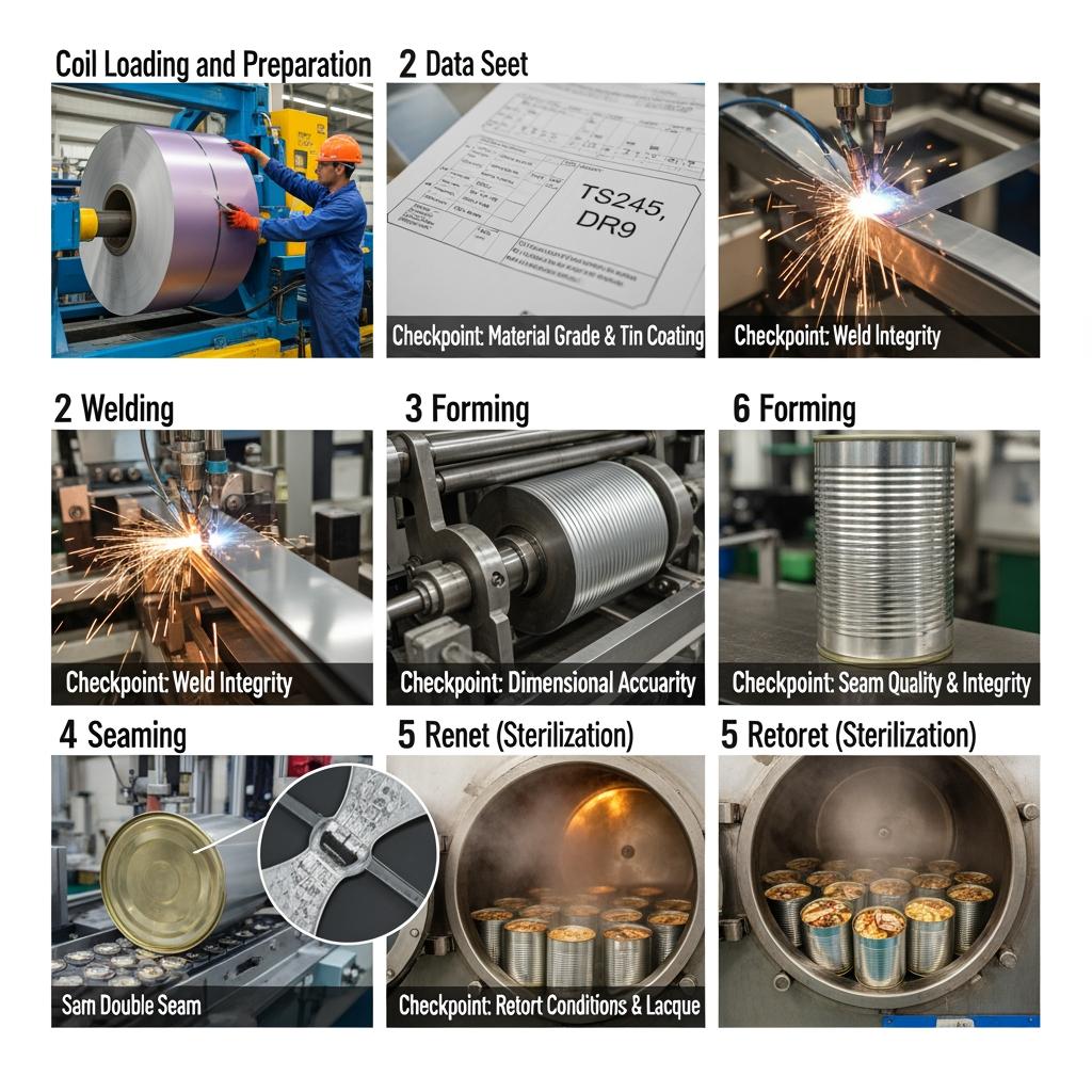 Start with the finished good: product medium, fill mass, process time/temperature, and shelf-life target. From there, back into base steel (single vs. double reduced), temper for each component, coating weight/differential, and lacquer stack. Specify QA checkpoints that mirror your reality—especially seaming trials after full retort—then agree on acceptance criteria that include taste and odor alongside dimensional conformity. Use Incoterms and inspection protocols that fit your risk appetite; pre-shipment inspections reduce surprises but don’t replace a robust first-article run.