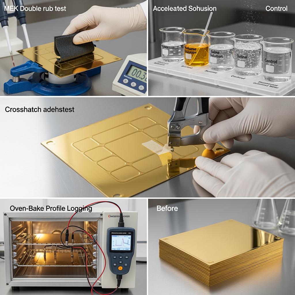 Set incoming QA with salt-spray proxies, EIS impedance checks, and MEK rub counts, but most telling is product-specific soak testing at use temperature. Tie sign-off to both aesthetic and functional thresholds—gloss retention, ΔE color drift, and absence of underfilm attack.