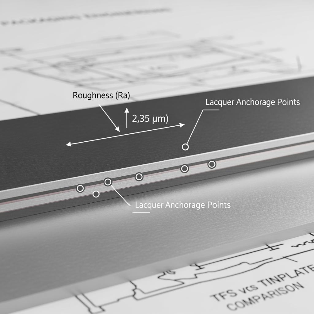 TFS is low-carbon steel coated with metallic chromium and chromium oxide. It offers excellent lacquer adhesion, consistent scoring, and often better cost stability versus tinplate.