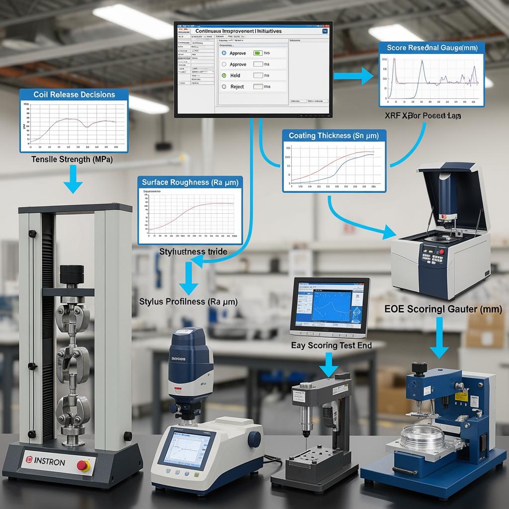 A brief incoming-to-line control loop accelerates learning: verify CoA → spot-check Ra/mechanicals → run a short press trial → measure pop force and residuals → release coil. Mapping those measurements to your SPC charts stabilizes quality and reduces scrap.