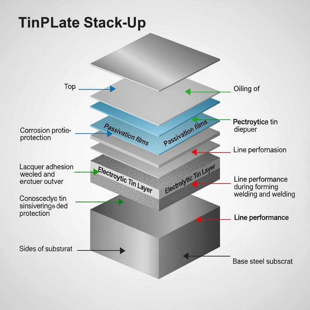 Massa pelapisan hanya satu tuas. Ketebalan substrat, temper/kekuatan (reduksi tunggal vs reduksi ganda), hasil akhir permukaan, jenis pasif, dan peminyakan secara kolektif mengatur jendela proses Anda. Substrat tereduksi ganda (DR) memungkinkan pengukur yang lebih tipis untuk kinerja yang sama, tetapi kekuatan yang lebih tinggi berarti jari-jari tikungan yang lebih tajam dan kontrol penyetrikaan yang lebih ketat. Timah yang lebih tinggi dapat meningkatkan margin korosi namun mempersempit pengaturan pengelasan dan sedikit mengubah gesekan selama pembentukan.