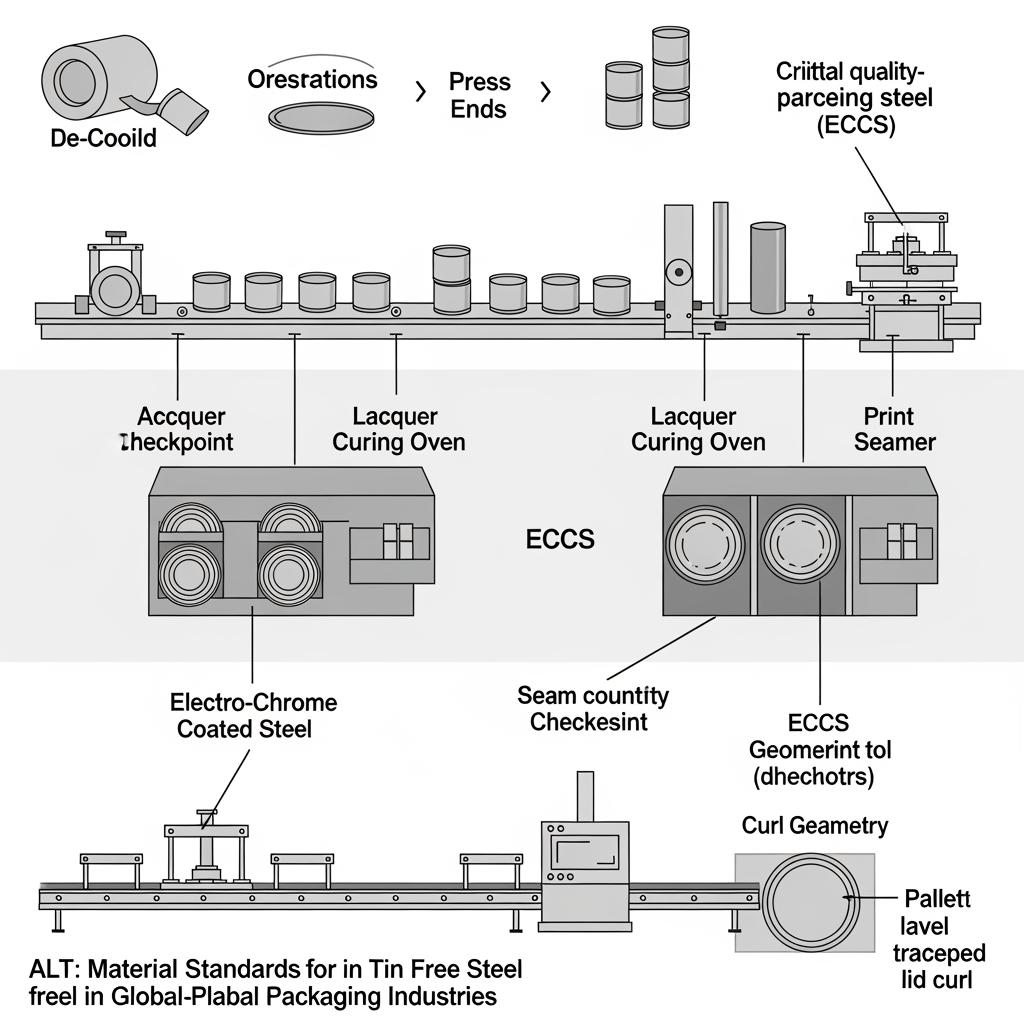 Across food, beverage, aerosol, and general industrial goods, buyers are tightening specifications for safety, sustainability, and global compliance. This guide explains Material Standards for Tin Free Steel in Global Packaging Industries and shows how electrolytic chromium coated steel (ECCS, also called TFS) meets modern requirements without sacrificing printability, formability, or corrosion performance. If you already have specs, share them for a fast DFM check—Tinsun Packaging can sample, pre-test lacquers, and quote from their ECCS/TFS product catalog.
