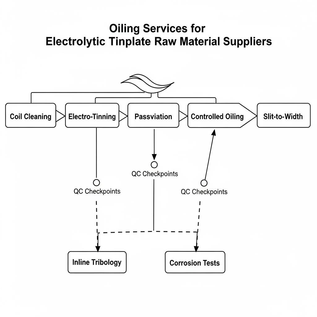 When qualifying oiling for ETP, align on three items early: which processes the sheet must pass (deep draw, embossing, beading, welding), how the surface will be finished (printing, varnishing, internal/external lacquers), and what the storage environment looks like (temperature, humidity, transit duration). That alignment drives oil chemistry selection and film target.