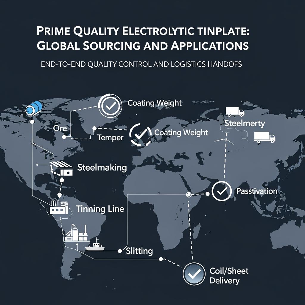 | Application fit | Ends, bodies, closures, aerosols | Align spec to forming and sterilization cycle | Prime Quality Electrolytic Tinplate: Global Sourcing and Applications focus requires lifecycle thinking |