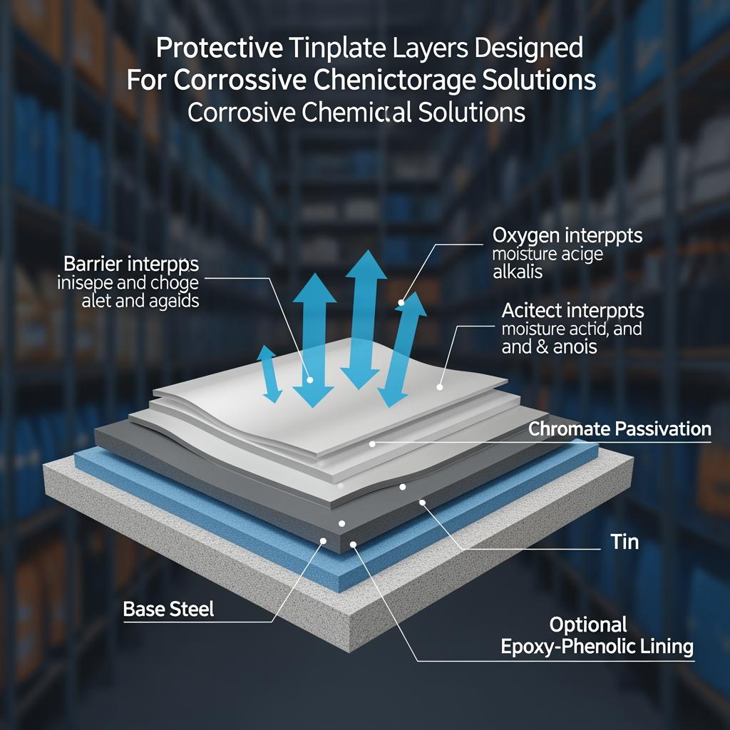 Tinplate remains a workhorse for chemical cans because it combines steel strength with a finely controlled tin surface that can be passivated and lined to resist attack. The big idea is simple: for aggressive products, protective tinplate layers are engineered as a stack—base steel, tin coating, passivation, and sometimes an organic lacquer—so the stored chemical never meets bare metal. This article explains how to specify, test, and buy Protective Tinplate Layers for Corrosive Chemical Storage Solutions with confidence.