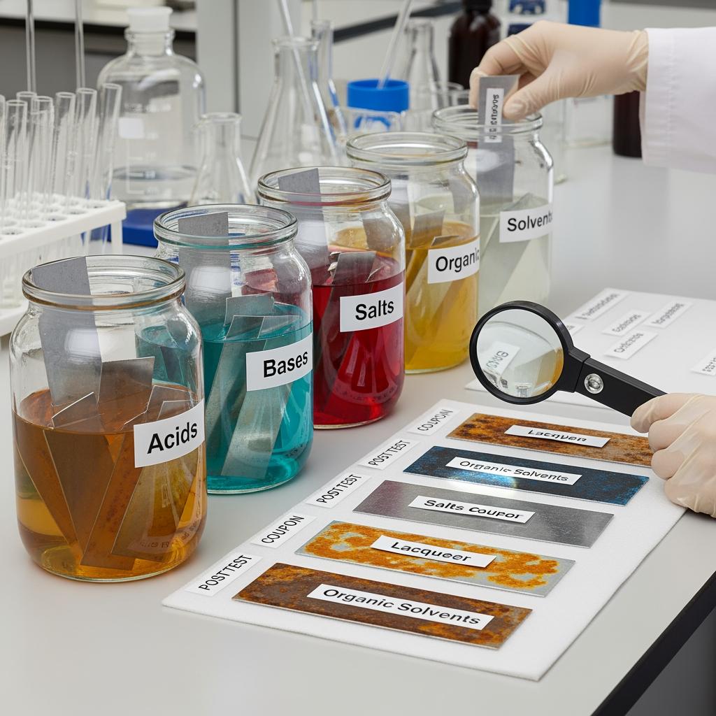 | ASTM G31 (immersion) | Weight‑loss/coupon evaluation in actual or simulated products | Selecting lacquer systems and tin weights for specific formulas | Best for liquids that will contact the wall continuously. |