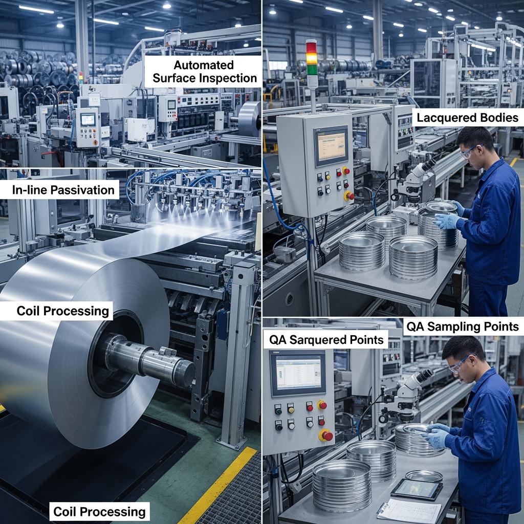 Wholesale programs should provide predictable coil widths, join‑free sheets for critical body diameters, and packaging that protects edges and surfaces during transit. Ask for grease level, surface finish, and coil ID/OD that match your lines. For corrosive products, insist on documented passivation parameters and lacquer cure windows. Robust pallets, VCI wraps, and corner protection reduce hidden costs from scuffs that become corrosion initiators later.