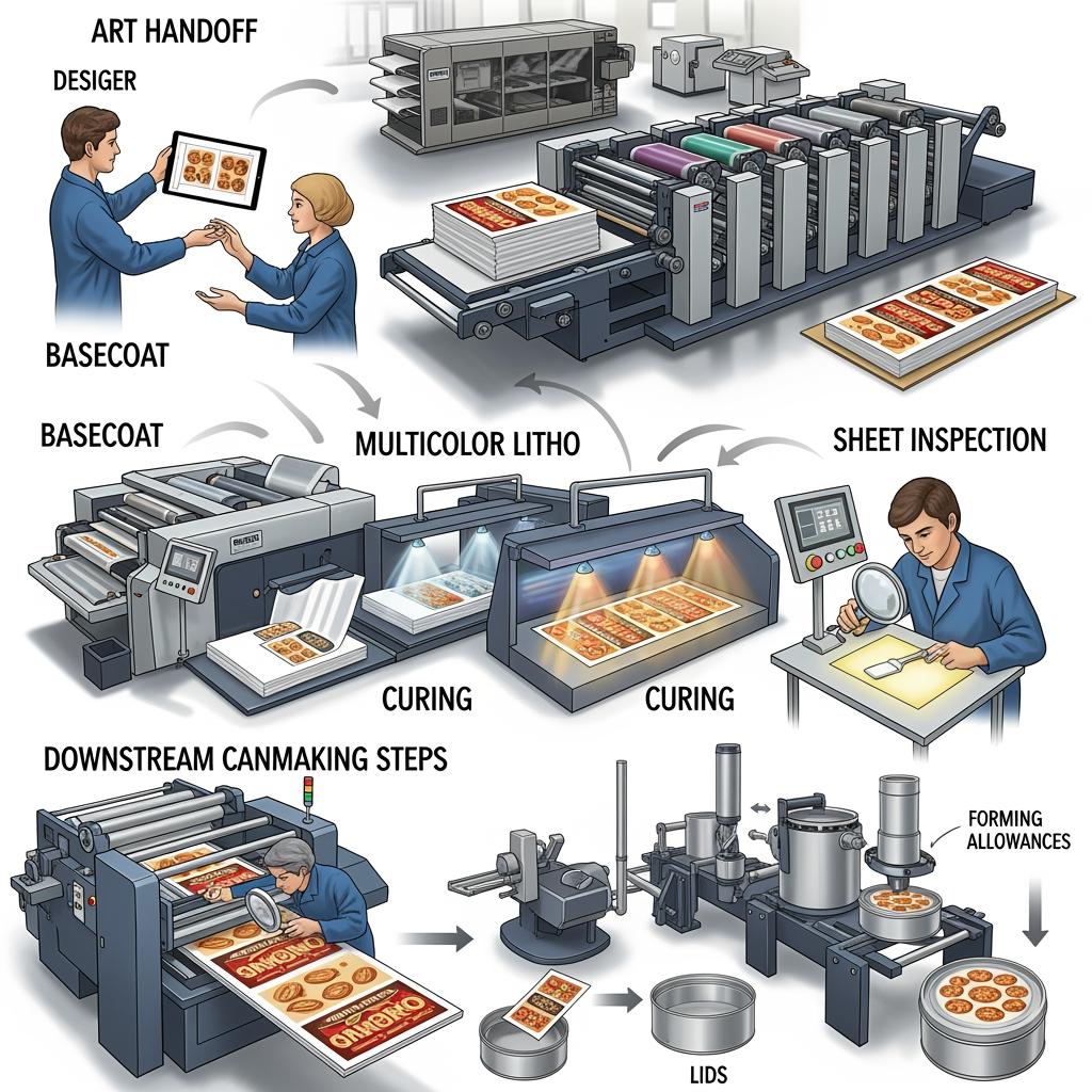 A strong way to de-risk artwork is to run a short pilot on the specified finish and lacquer, then form a small batch of lids and bases. This quickly surfaces any cracking, witness lines, or color shifts caused by draw and curl.