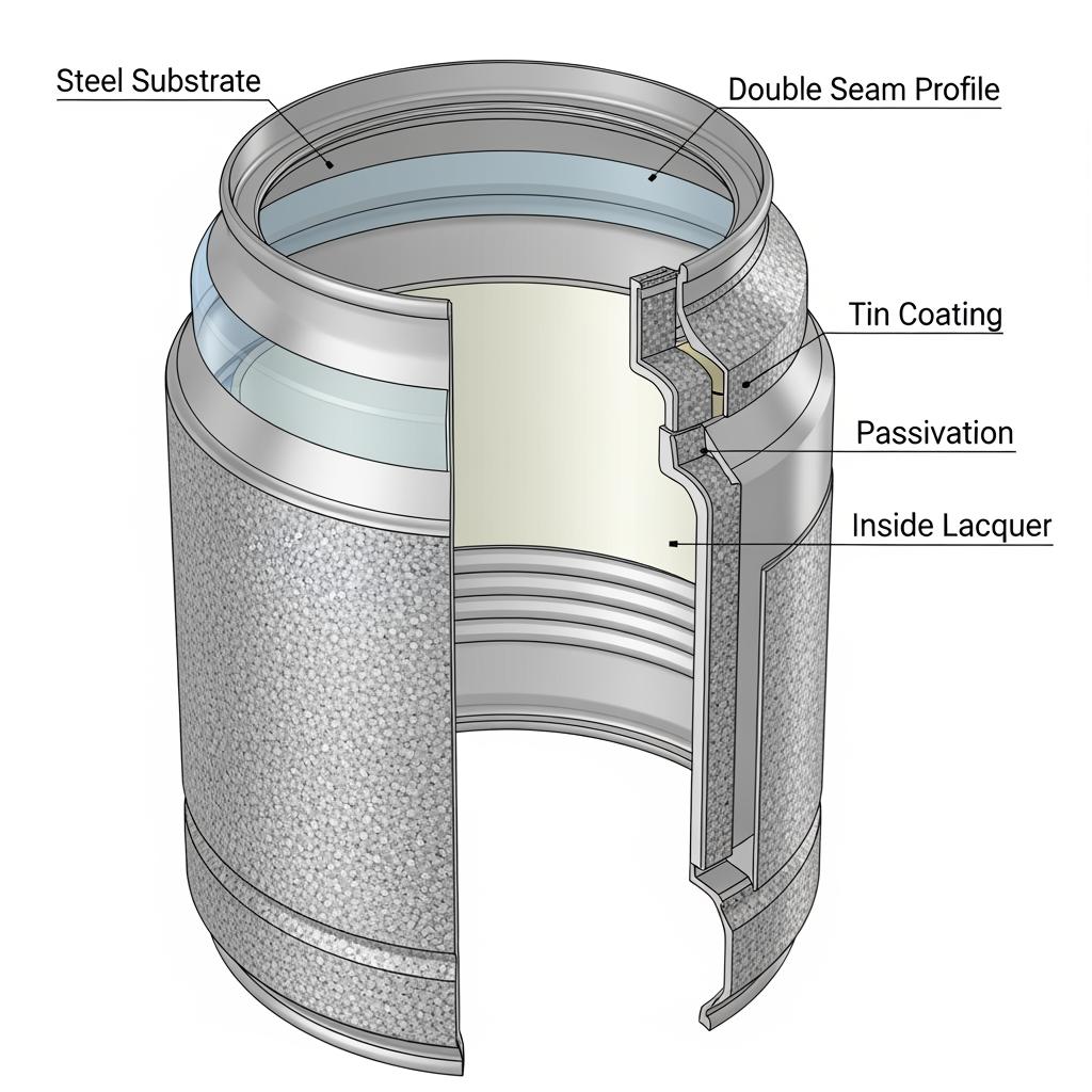 Barrier success comes from the system, not any single layer. The steel provides stiffness and drop strength; the tin layer offers sacrificial protection; passivation governs tin stability; and the internal lacquer provides the primary chemical barrier. Strong solvents can swell or plasticize coatings, so resin chemistry and cure conditions are critical.