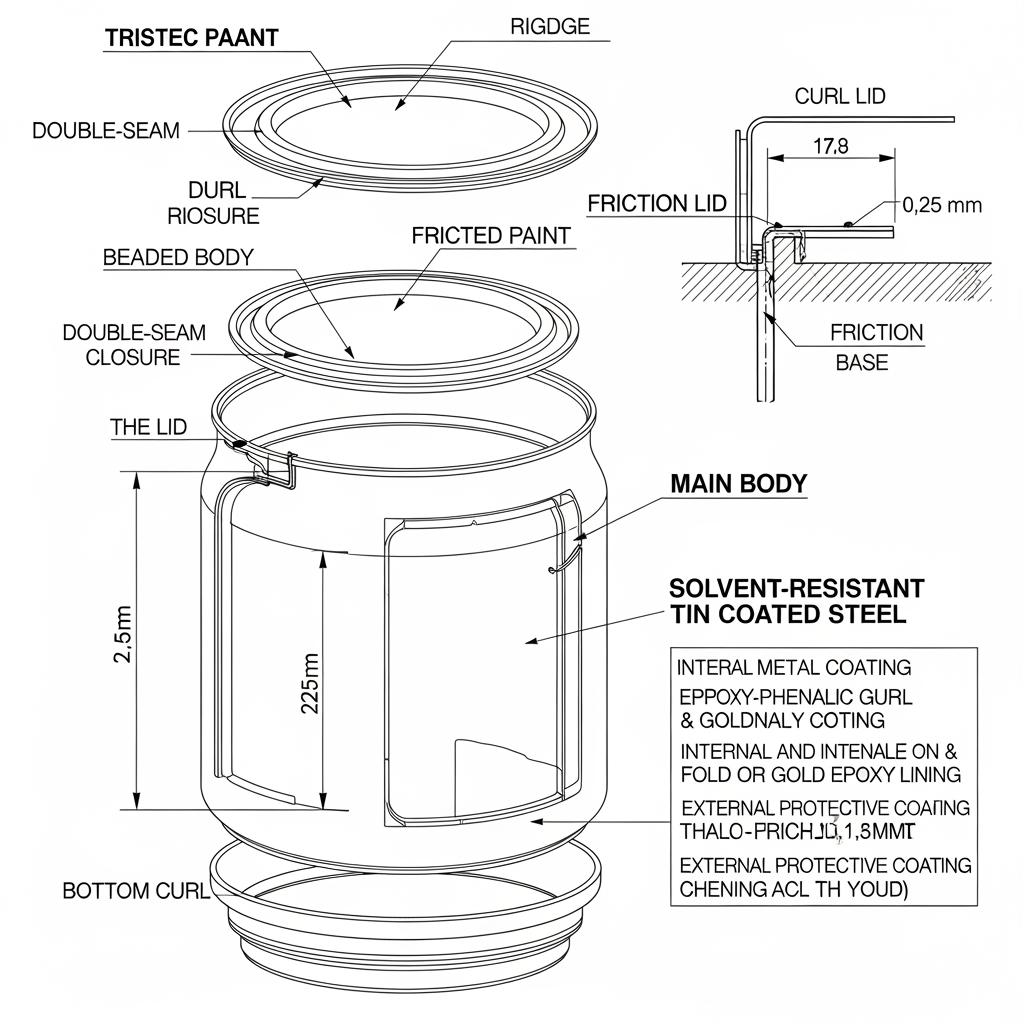 Electrolytic tinplate remains the workhorse for paints, varnishes, and thinners because it forms clean double seams, accepts printing well, and marries strength with barrier coatings. For commodity thinners, differential coatings can reduce cost while maintaining inside protection; for premium paints with long shelf life, heavier tin and tighter cure deliver extra margin.