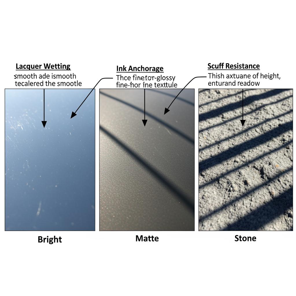 Matte/Stone finishMicro-roughened surfacePrint/varnish holdoutImproved ink anchorageDifferent gloss; align with brand artwork.