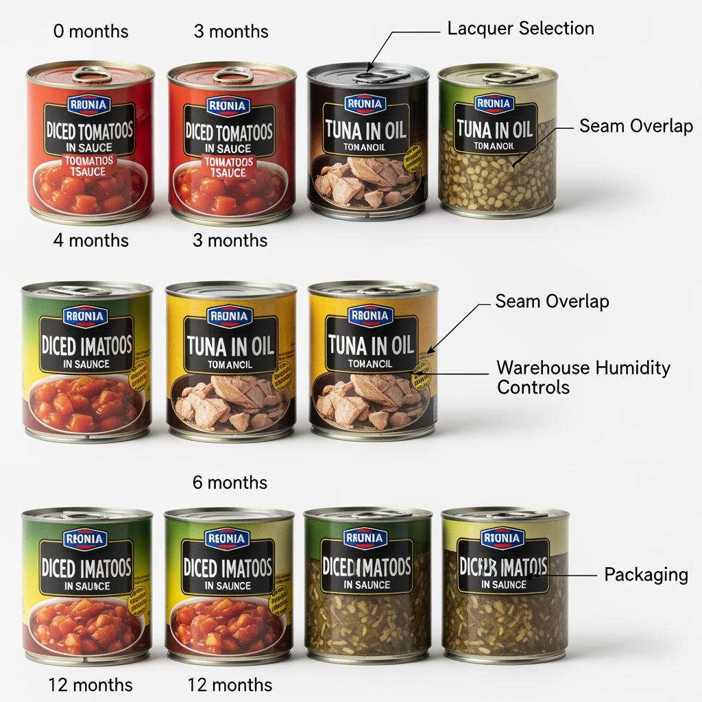 Tin is amphoteric and relies on its oxide film, plus passivation and lacquer, to keep food and metal apart. Inside the can, chemistry (acid, salt, sulfur), processing (retort temperature, oxygen removal), and micro-defects in lacquers determine actual performance. Outside the can, warehouse humidity and carton wetting matter just as much for rust avoidance.