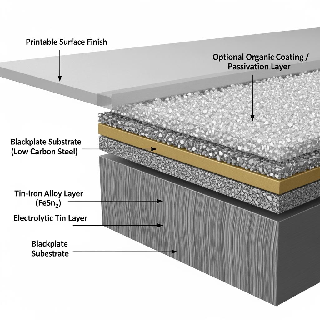 | Surface chemistry | Tin + tin-iron alloy | Chromium + chromium oxide | Drives lacquer selection and weld/solder routes. |