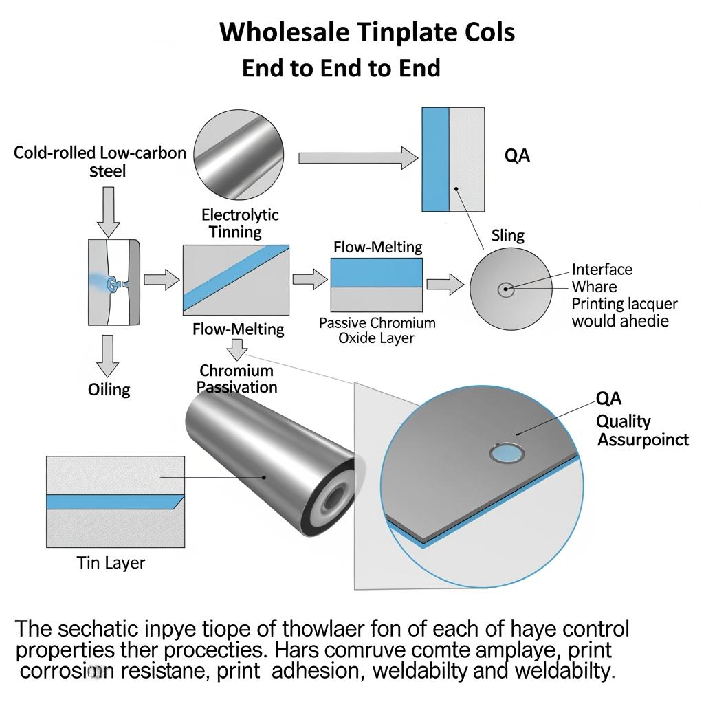 In practice, buyers choose a substrate temper (e.g., T1–T5 single reduction or DR double reduction) to balance formability and panel strength, pair it with a coating weight suitable for the product’s shelf life and environment, and select a passivation that works with downstream operations (welding, lithography, and retort). The chromium layer is extremely thin—measured in milligrams per square meter—but it drives critical behaviors like sulfur stain resistance and lacquer wetting.