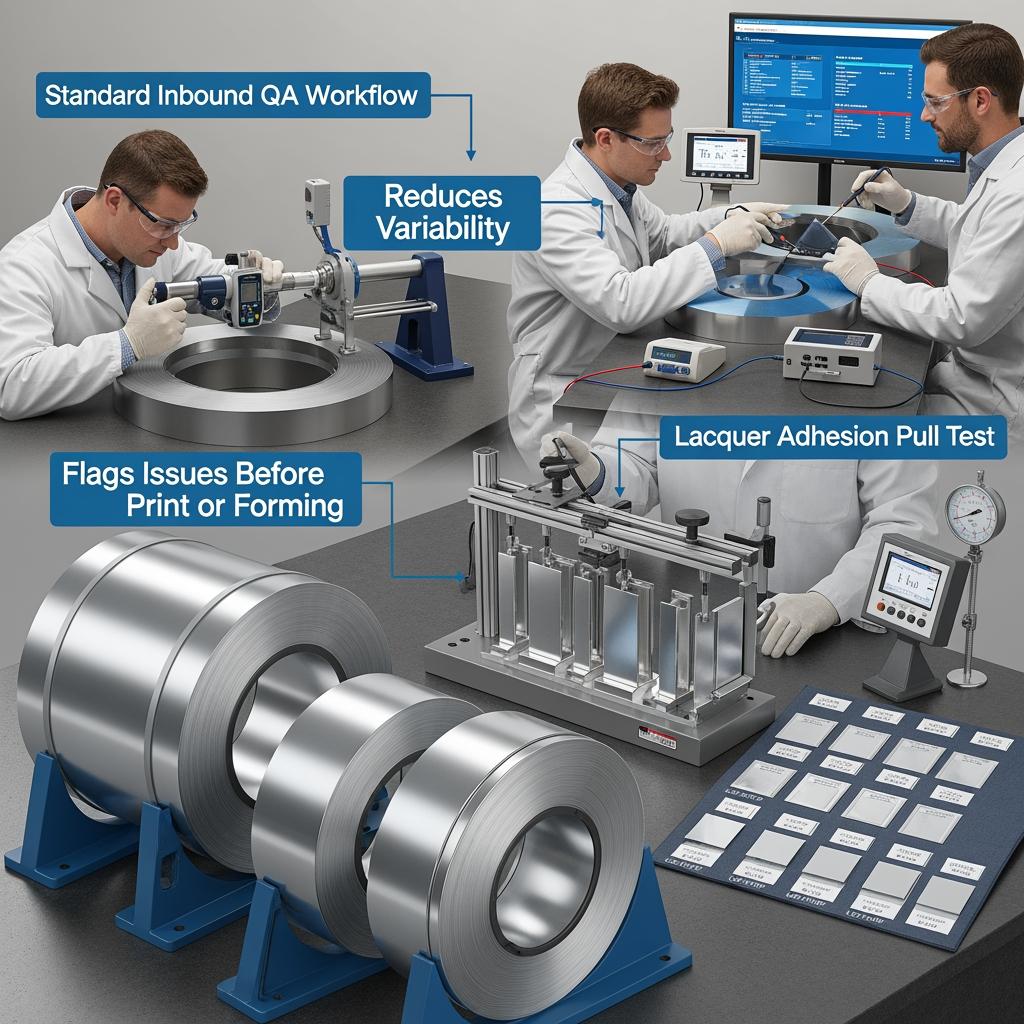 Standards underpin supplier alignment and inspection. Many buyers reference ISO 11949 for electrolytic tinplate definitions and test methods, and ASTM general requirements for tin mill products (e.g., dimensions, packaging, sampling, and key inspection protocols). What matters most is mapping your in-house acceptance criteria—coating continuity, passivation class, lacquer adhesion, and weld seam performance—to the corresponding test routines and tolerances in the standard you adopt.